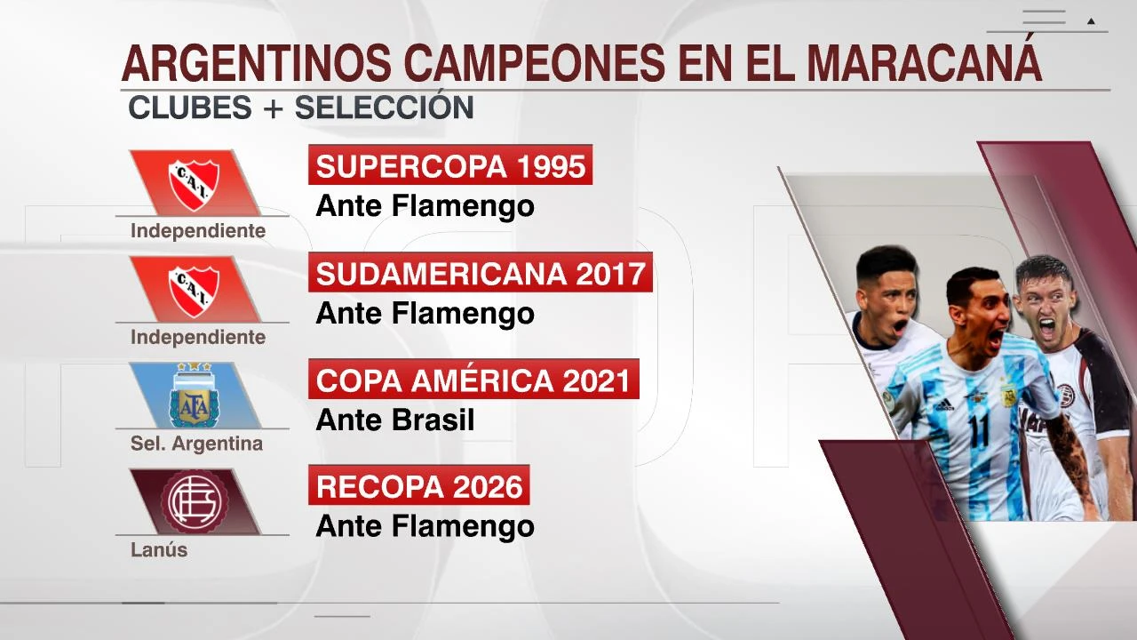 Aporta nuestro colega Martín Macchiavello que Lanús es el único equipo en la historia del fútbol que se coronó en el mítico Maracaná con victoria incluida. Si bien también Independiente había conseguido la Supercopa en 1995 y Copa Sudamericana en 2017 en aquel estadio, en ambos partidos no pudo conseguir el triunfo ante el Mengão.