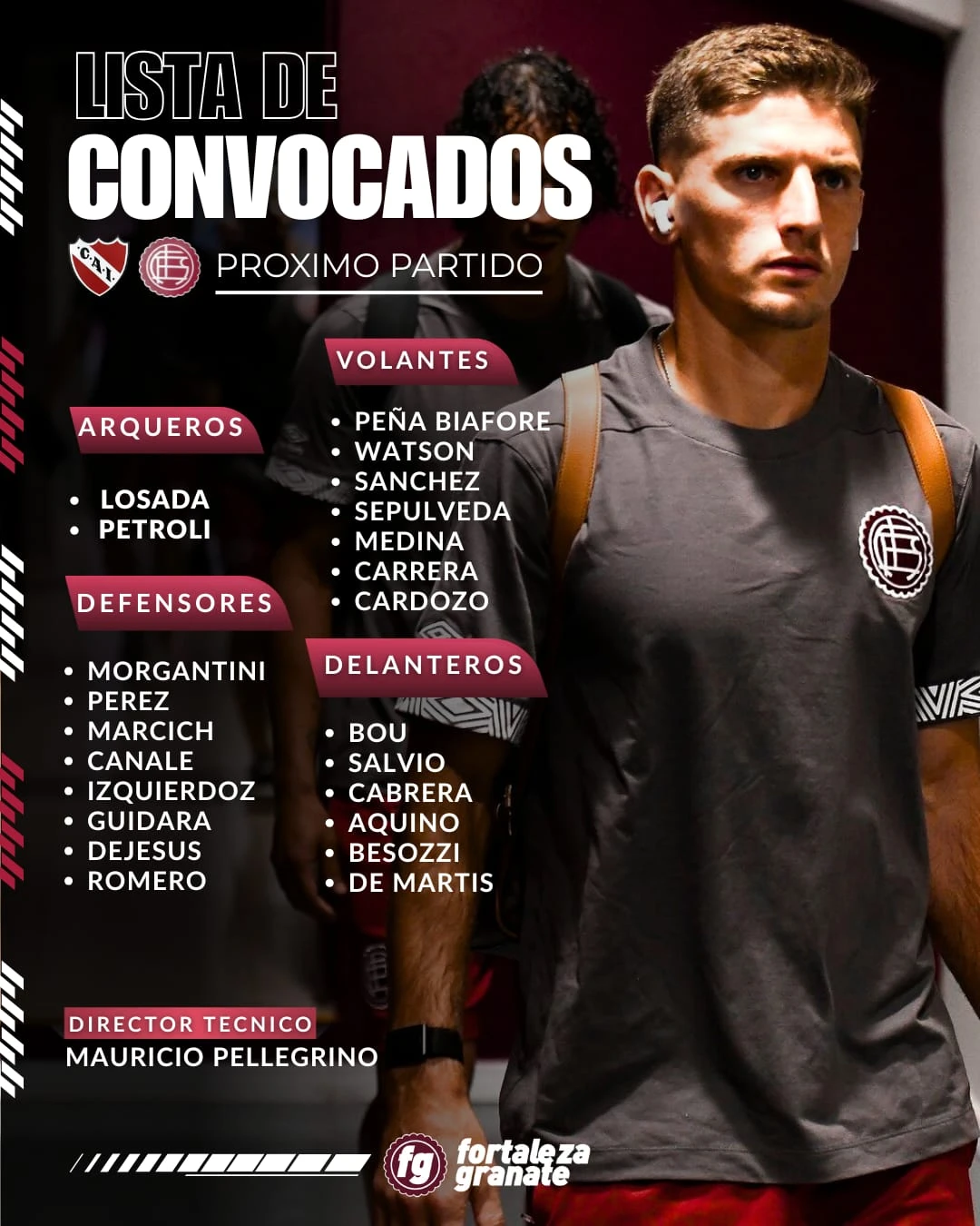 ¿El equipo? El Granate iría con: Losada; Pérez, Izquierdoz, Dejesús, Sepúlveda; Peña Biafore, Cardozo; Salvio, Watson, Aquino; y Bou. Completan la nómina de los convocados: Petroli, Romero, Canale, Guidara, Marcich, Morgantini, Medina, Sánchez, Carrera, Cabrera, Besozzi y De Martis.