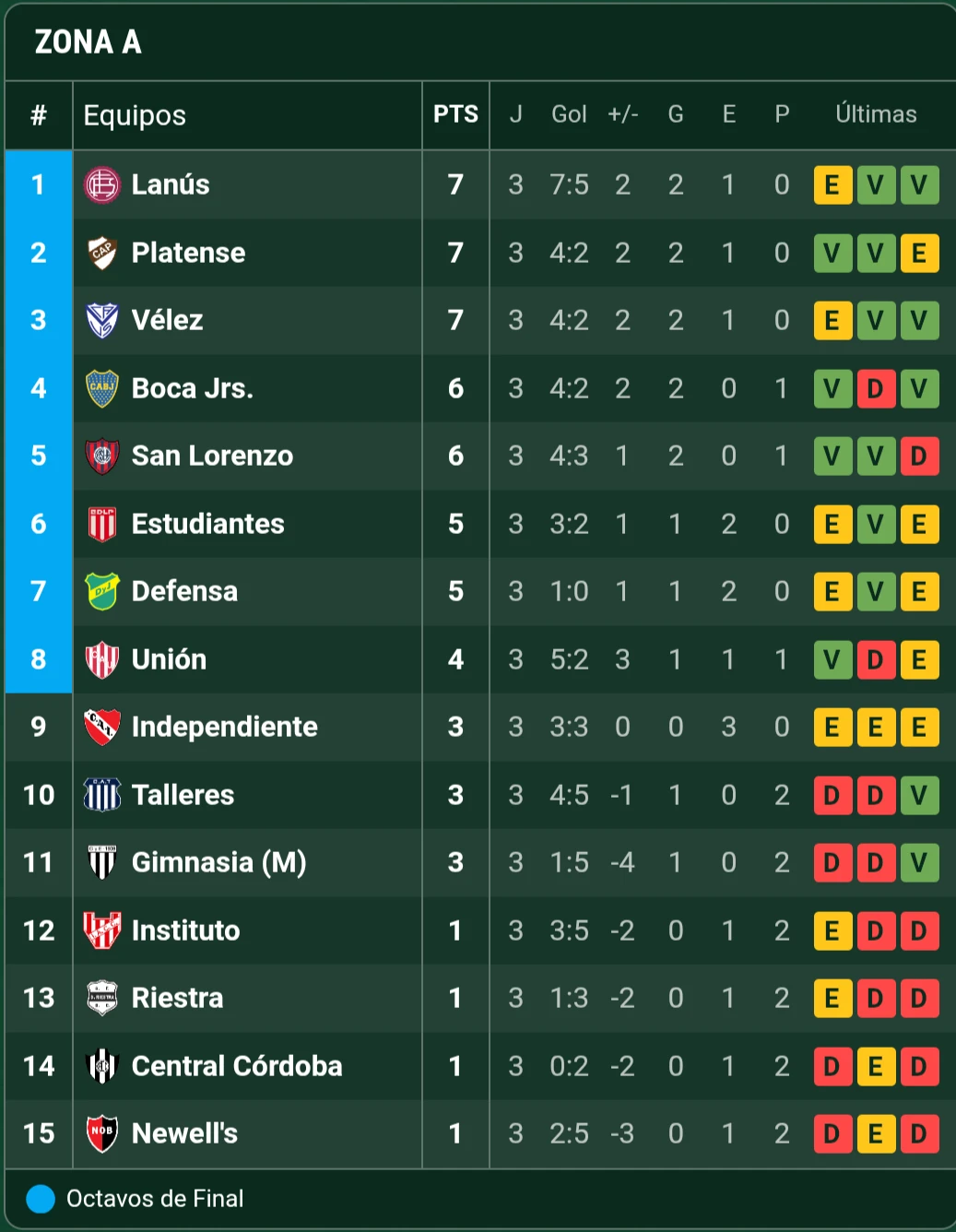 Concluída la fecha 3 del Torneo Apertura, Lanús es el líder de la Zona A con siete puntos, al igual que Platense y Vélez. Asimismo, con siete tantos es el equipo más goleador del certamen, aunque con cinco goles concedidos es uno de los segundos al que más le convirtieron, solo por detrás de Racing (siete).