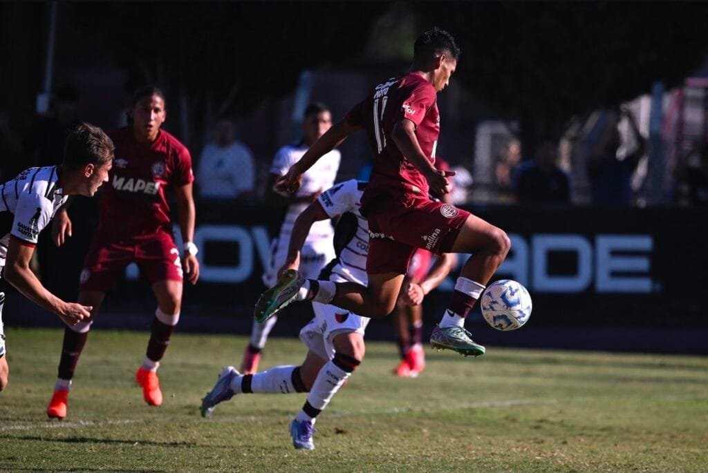 A lo largo del encuentro, Lanús fue el protagonista del juego y lo demostraba en los primeros minutos con centros desde las bandas que quedaban largos. A los 16’, uno de esos envíos al área encontró a Thomas De Martis, que de un potente cabezazo dejó temblando el arco tras estrellar la pelota contra el palo.